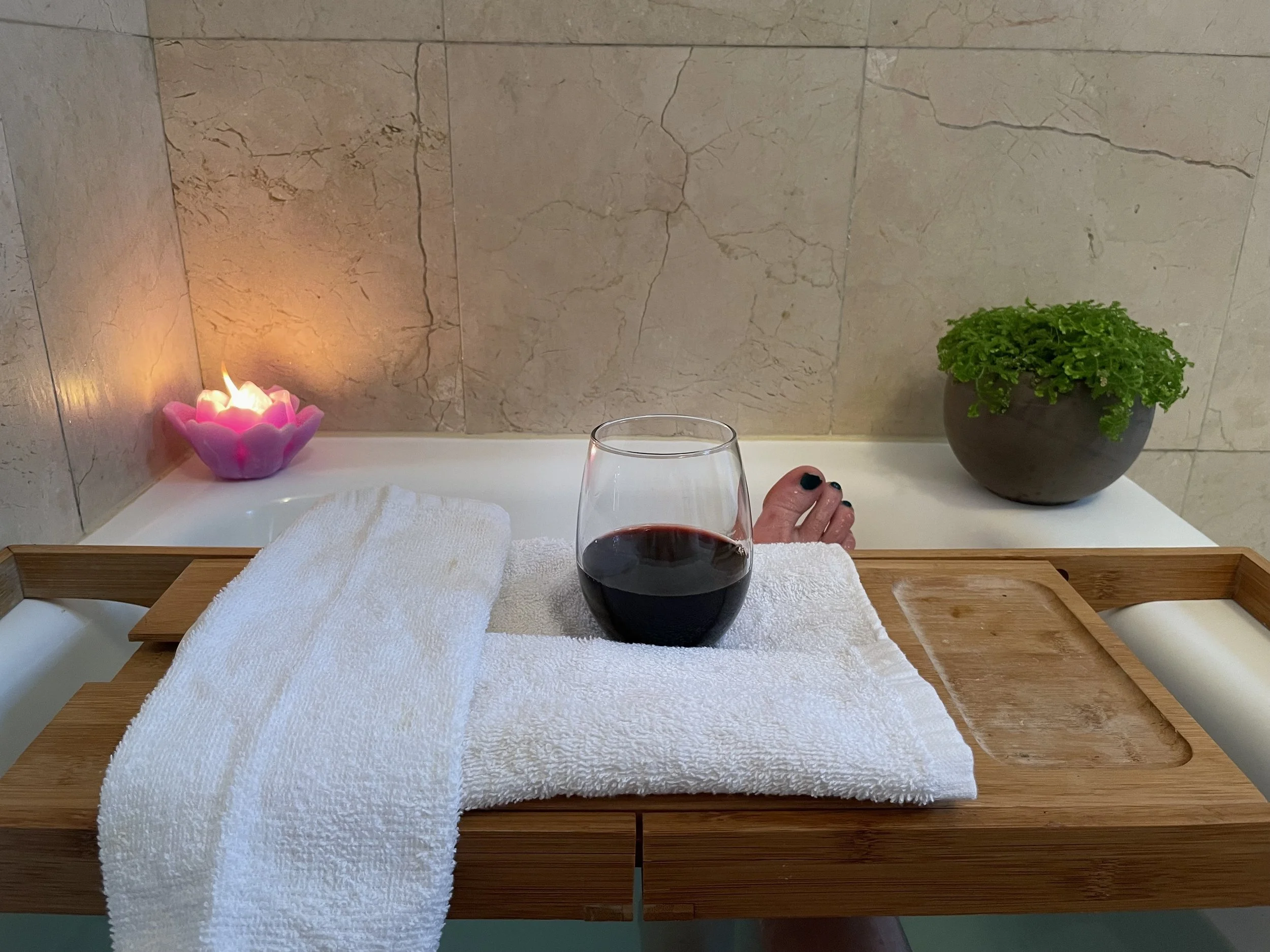 Se te sugiere que reúnas algunos elementos para la experiencia y te sumerjas en la bañera (o palangana), donde crearás danzas con tus dedos en la superficie del agua, escucharás poemas, cantarás y te darás a ti mismx un masaje relajante para el cuello.